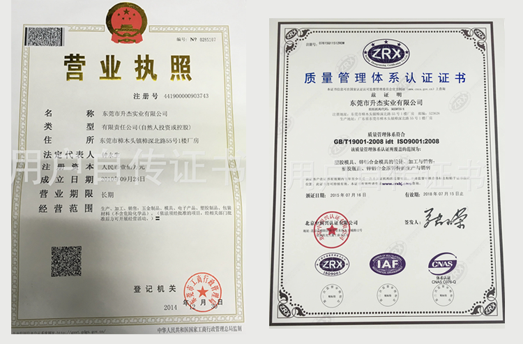 About Us关于我们 Dongguan Sunjieh Industrial Co., Ltd was established in 2010, Located in Zhangmutou Dongguan city, we are professional manufacturer which integrates design, manufacture, sales and service, one stop service. Our main products including all kinds of bottle cap, such as Zinc wine bottle cap, plastic bottle cap, perfume bottle cap, earbuds, and plastic mold injection, mould design manufacture and processing, ect. We also provide customized service to meet different customers’ demands. We always adhering to "Quality makes development, Service win reputation and Sincerity reflects value", We sincerely wish to building a win-win business relationship with you in the future. 东莞市升杰实业有限公司成立于2010年, 主要两大类产品:一:是以酒瓶盖,香水瓶等瓶盖类,二是:耳机外壳,耳机成品等产品,以锌铝合金及塑胶模具制造,锌、铝合金压铸,塑胶压铸等专业核心技术生产加工的公司,拥有完整、科学的质量管理体系以及专业的制模加工技术。东莞市升杰实业有限公司的诚信、实力和产品质量获得业界的认可。欢迎各界朋友莅临参观、指导和业务洽谈。